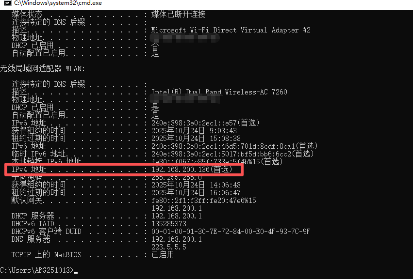 在一台电脑上执行 ipconfig /all,查看获取到的DHCP服务器地址是否是你预期的官方服务器地址。如果不是,说明网络中存在非法DHCP服务器,在公司场景中,最容易出现的就是小路由器。